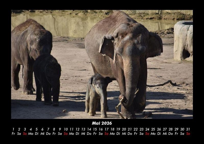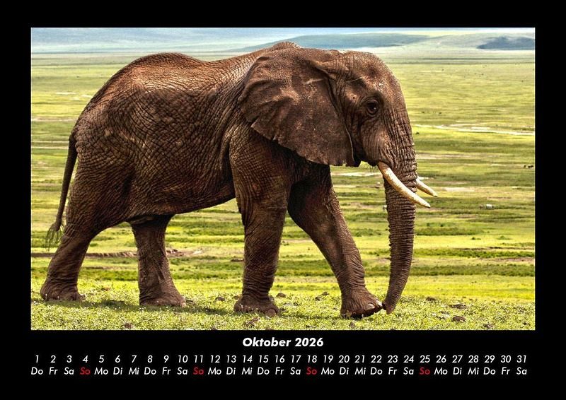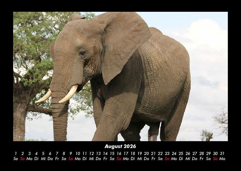 Elefanten - Die sanften Riesen Afrikas 2026 Motivkalender DIN A3 Vero-Kalender erhalten Sie mit Motiven aus den verschiedensten Themenbereichen wie Natur, Blumen und Landschaft, Tierwelt, Architektur, Reise und Urlaub, Technik, Automobil und Eisenbahn, Emotionen, Sport und Musik. Gedruckt werden die Monats-Kalender aus dem Vero Verlag auf hochwertigem Kalenderbogen in Premium-Qualität und verschiedenen Größen. Die Vielfältigkeit der Motive unserer Foto-Kalender ist dank der Zusammenarbeit mit kreativen Fotografen möglich.