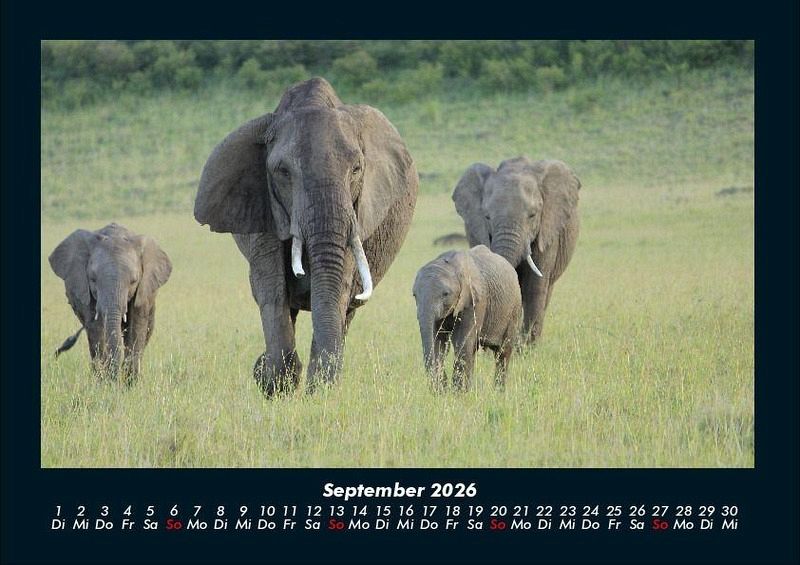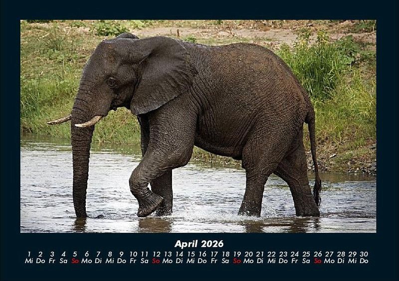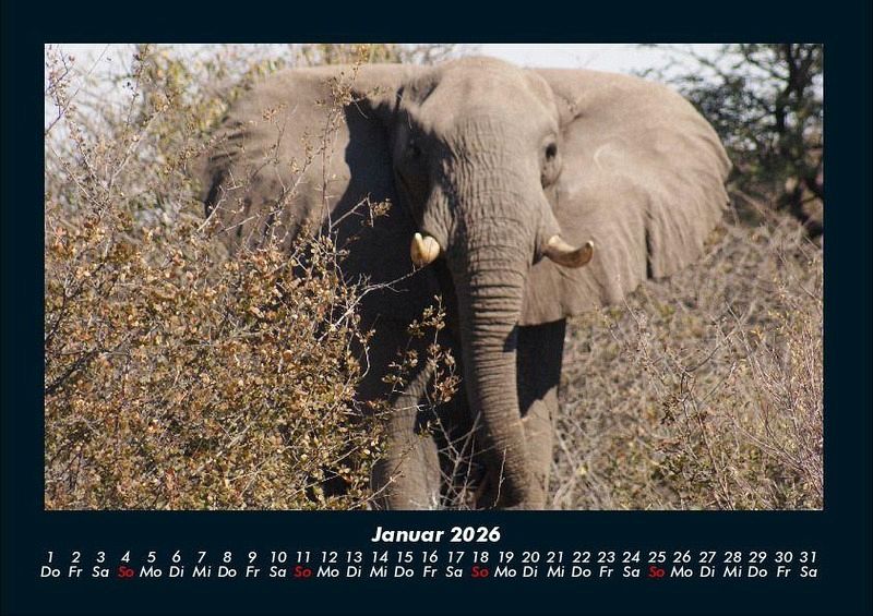 Elefanten - Die sanften Riesen Afrikas 2026 Motivkalender DIN A4 Der Kalender für Elefanten-Liebhaber zeigt Elefanten aus Afrika und Asien. Gruppen, Einzeltiere und Baby-Elefanten in wunderschöner Landschaft. Abwechslungsreich führt dieser Kalender durch ein Jahr der großen Dickhäuter. Vero-Kalender erhalten Sie mit Motiven aus den verschiedensten Themenbereichen wie Natur, Blumen und Landschaft, Tierwelt, Architektur, Reise und Urlaub, Technik, Automobil und Eisenbahn, Emotionen, Sport und Musik. Gedruckt werden die Monats-Kalender aus dem Vero Verlag auf hochwertigem Kalenderbogen in Premium-Qualität und verschiedenen Größen. Die Vielfältigkeit der Motive unserer Foto-Kalender ist dank der Zusammenarbeit mit kreativen Fotografen möglich.