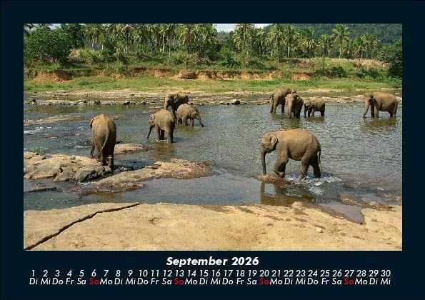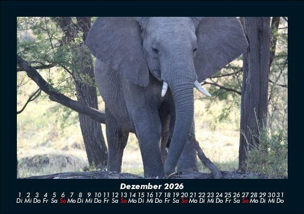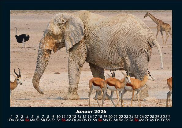 Elefanten - Die sanften Riesen Afrikas 2026 Motivkalender DIN A5 Eindrucksvolle Aufnahmen des größten Landsäugetiers der Erde. Vero-Kalender erhalten Sie mit Motiven aus den verschiedensten Themenbereichen wie Natur, Blumen und Landschaft, Tierwelt, Architektur, Reise und Urlaub, Technik, Automobil und Eisenbahn, Emotionen, Sport und Musik. Gedruckt werden die Monats-Kalender aus dem Vero Verlag auf hochwertigem Kalenderbogen in Premium-Qualität und verschiedenen Größen. Die Vielfältigkeit der Motive unserer Foto-Kalender ist dank der Zusammenarbeit mit kreativen Fotografen möglich.