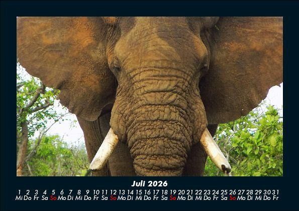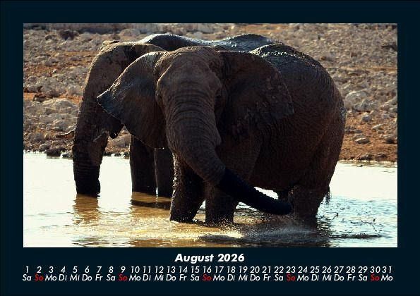 Elefanten - Die sanften Riesen Afrikas 2026 Motivkalender DIN A5 Der Kalender für Elefanten-Liebhaber zeigt Elefanten aus Afrika und Asien. Gruppen, Einzeltiere und Baby-Elefanten in wunderschöner Landschaft. Abwechslungsreich führt dieser Kalender durch ein Jahr der großen Dickhäuter. Vero-Kalender erhalten Sie mit Motiven aus den verschiedensten Themenbereichen wie Natur, Blumen und Landschaft, Tierwelt, Architektur, Reise und Urlaub, Technik, Automobil und Eisenbahn, Emotionen, Sport und Musik. Gedruckt werden die Monats-Kalender aus dem Vero Verlag auf hochwertigem Kalenderbogen in Premium-Qualität und verschiedenen Größen. Die Vielfältigkeit der Motive unserer Foto-Kalender ist dank der Zusammenarbeit mit kreativen Fotografen möglich.