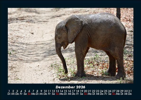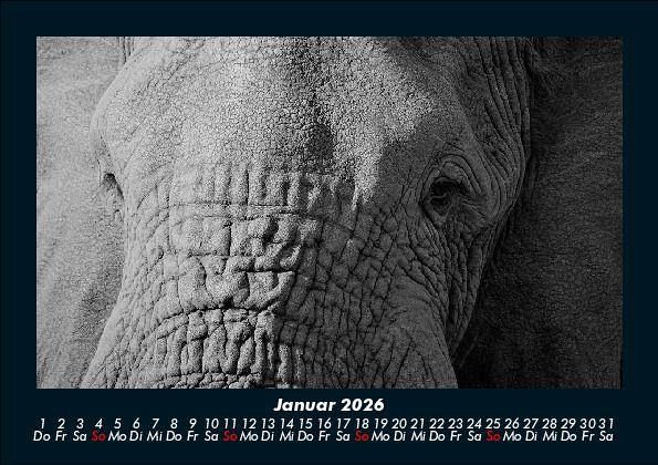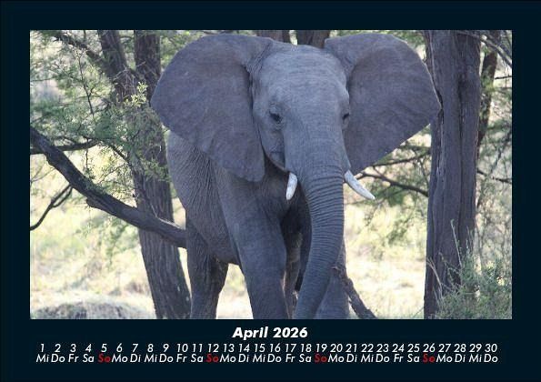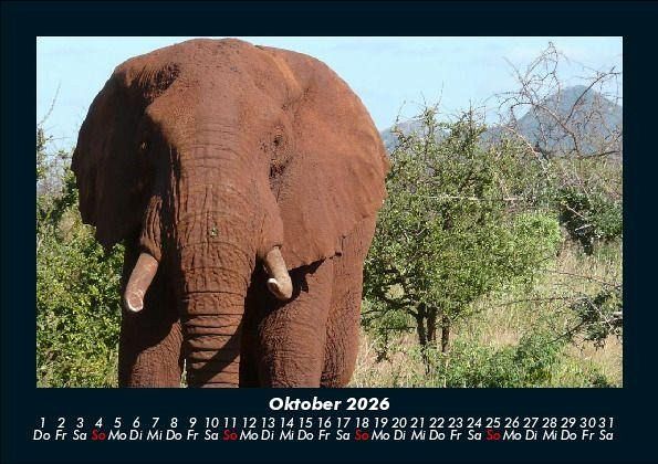 Elefanten - Die sanften Riesen Afrikas 2026 Motivkalender DIN A5 Dieser Kalender zeigt eindrucksvolle Aufnahmen von Elefanten, den größten Landsäugetieren der Erde, in freier Wildbahn. Vero-Kalender erhalten Sie mit Motiven aus den verschiedensten Themenbereichen wie Natur, Blumen und Landschaft, Tierwelt, Architektur, Reise und Urlaub, Technik, Automobil und Eisenbahn, Emotionen, Sport und Musik. Gedruckt werden die Monats-Kalender aus dem Vero Verlag auf hochwertigem Kalenderbogen in Premium-Qualität und verschiedenen Größen. Die Vielfältigkeit der Motive unserer Foto-Kalender ist dank der Zusammenarbeit mit kreativen Fotografen möglich.