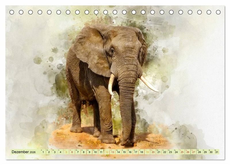 Für diesen Kalender hat der Fotokünstler Peter Roder zwölf beeindruckende Elefanten-Bilder gestaltet. Ein Muss für alle Freunde der gewaltigen Tiere.