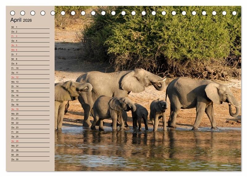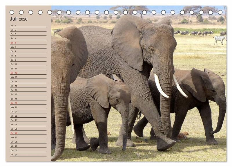 Sie sind feinfühlig und wandern trotz ihres enormen Gewichts auf leisen Sohlen. Ihre Fächerohren verschaffen Kühlung und ihr Rüssel dient als verlängerte Nase und ist zugleich ein Multifunktionsorgan. Die größten Säugetiere der Erde faszinieren immer wieder. Ein schöner Planer für die gesamte Familie.