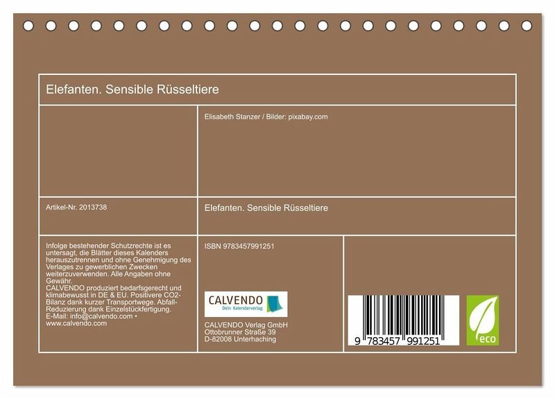 QUALITÄT - Hochwertiger Fotokalender mit 12 wunderschönen Motiven auf lichtbeständigem Bilderdruckpapier, robuste Spiralbindung.NACHHALTIG - deutliche Abfallreduzierung durch bedarfsgerechte Einzelstückfertigung, umweltfreundliches FSC-zertifiziertes Papier, Produktion in Deutschland, klimabewusste Logistik.PERFEKTES GESCHENK - Kalender für Freunde und Familie, für Kinder und Erwachsene, jung und alt, zu Weihnachten, Geburtstag oder zwischendurch.VIELFALT - Bildkalender in verschiedenen Formaten, z.B. DIN A5, DIN A4, DIN A3 sowie DIN A2. Ob Naturmotiv, Gemälde oder Fotos, ideal für ein persönliches Wohlfühlambiente.Die starken und sensiblen Dickhäuter in Afrika von Autor(in): Elisabeth Stanzer