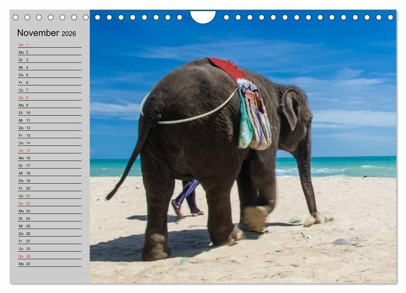 Dieser Kalender gehört zu den Calvendo Bestsellern. Welchen Spaß Elefanten beim spielen am Strand und beim Baden im Meer haben, zeigen diese wunderschönen Bilder. Es ist eine Freude das Elefantenbaby an Thailands Strand anzuschauen. Ein bezaubernder Planer für die ganze Familie.