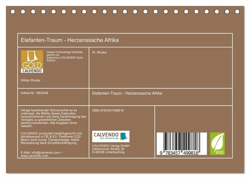 QUALITÄT - Hochwertiger Fotokalender mit 12 wunderschönen Motiven auf lichtbeständigem Bilderdruckpapier, robuste Spiralbindung.NACHHALTIG - deutliche Abfallreduzierung durch bedarfsgerechte Einzelstückfertigung, umweltfreundliches FSC-zertifiziertes Papier, Produktion in Deutschland, klimabewusste Logistik.PERFEKTES GESCHENK - Kalender für Freunde und Familie, für Kinder und Erwachsene, jung und alt, zu Weihnachten, Geburtstag oder zwischendurch.VIELFALT - Bildkalender in verschiedenen Formaten, z.B. DIN A5, DIN A4, DIN A3 sowieDIN A2. Ob Naturmotiv, Gemälde oder Fotos, ideal für ein persönliches Wohlfühlambiente.Dickhäuter im Kruger Nationalpark Südafrika von Autor(in): Wibke Woyke