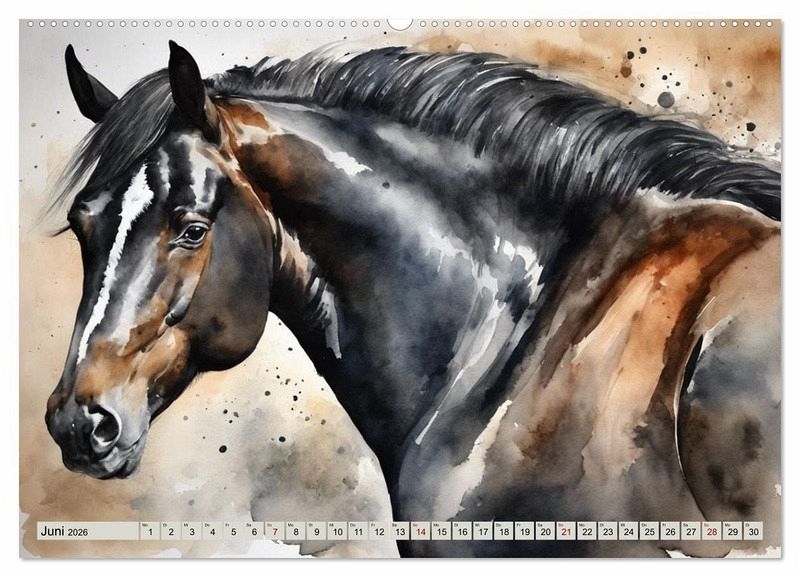 Pferde sind majestätische Tiere, die seit Jahrhunderten eng mit dem Menschen verbunden sind. Sie werden sowohl als Reit- als auch als Zugtiere eingesetzt und gelten als treue Begleiter und Arbeitspartner. Pferde sind bekannt für ihre Anmut, Kraft und Schnelligkeit und haben eine lange Geschichte in der menschlichen Kultur. Erfreuen Sie sich Monat für Monat an der Eleganz und Anmut. Die zauberhaften Aquarelle sind mithilfe der KI entstanden.