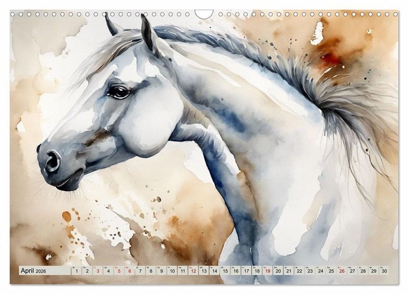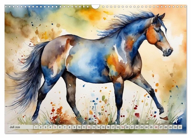 Pferde sind majestätische Tiere, die seit Jahrhunderten eng mit dem Menschen verbunden sind. Sie werden sowohl als Reit- als auch als Zugtiere eingesetzt und gelten als treue Begleiter und Arbeitspartner. Pferde sind bekannt für ihre Anmut, Kraft und Schnelligkeit und haben eine lange Geschichte in der menschlichen Kultur. Erfreuen Sie sich Monat für Monat an der Eleganz und Anmut. Die zauberhaften Aquarelle sind mithilfe der KI entstanden.