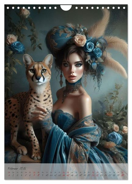 Februar: Eine verführerische Femme Fatale gekleidet in blau mit einer Wildkatze
