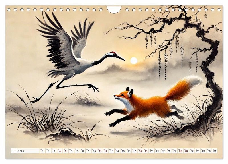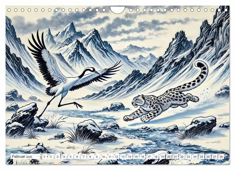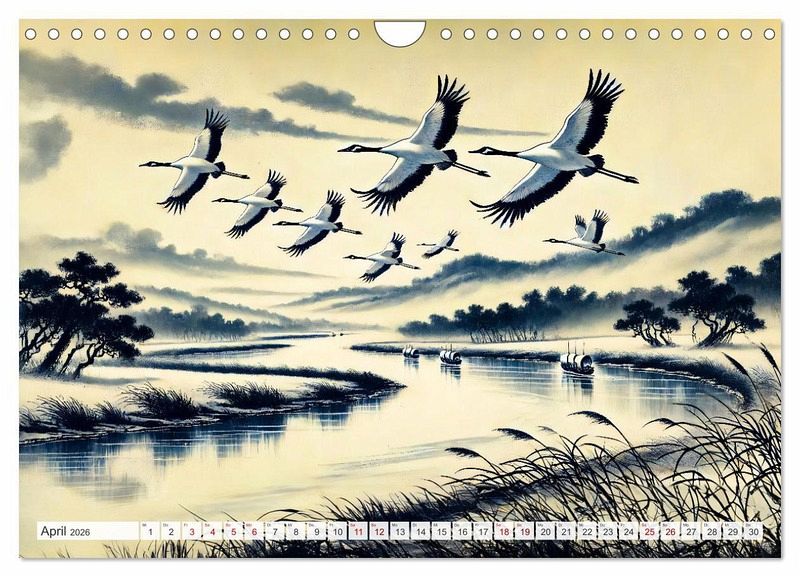 Tauchen Sie ein in die faszinierende Welt der traditionellen chinesischen Tuschmalerei mit diesem einzigartigen KI-generierten Kalender, der die Anmut und Schönheit der Kraniche einfängt. In feinstem Pinselstil dargestellt, symbolisieren diese majestätischen Vögel Harmonie, Glück und Langlebigkeit.