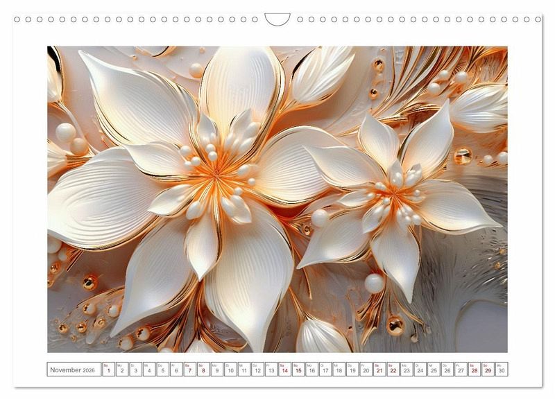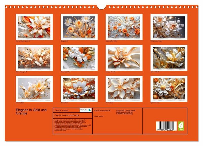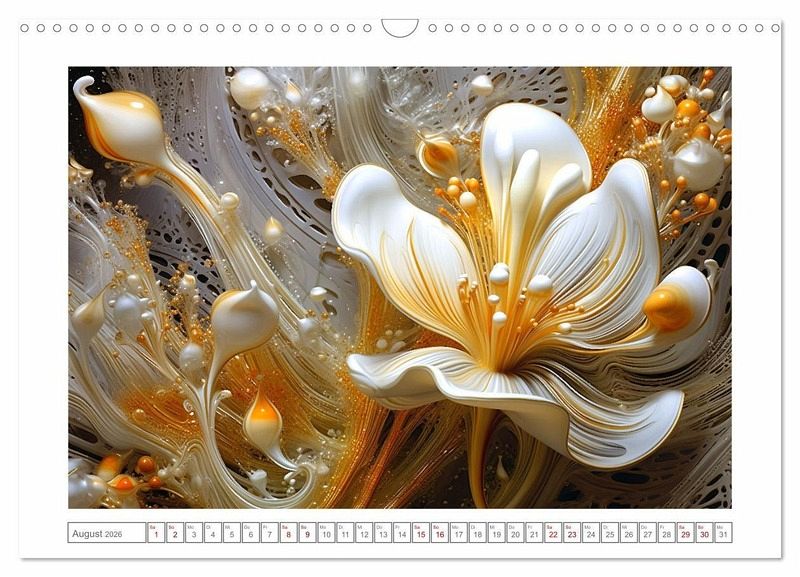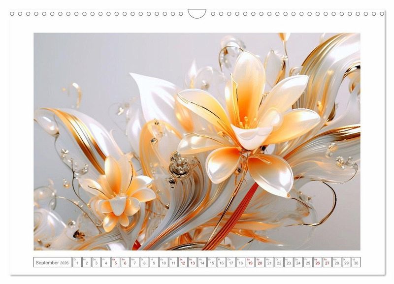 Elegante Blüten, warme, sonnenhafte Farben und feine florale Raffinesse. All das ist in diesem Kalender vereint und ermöglicht es Ihnen, ein Jahr lang zu träumen und sich von den bezaubernden Farben den Alltag versüßen zu lassen. Die Bilder dieses Kalenders wurden erstellt mit künstlicher Intelligenz und Photoshop.
