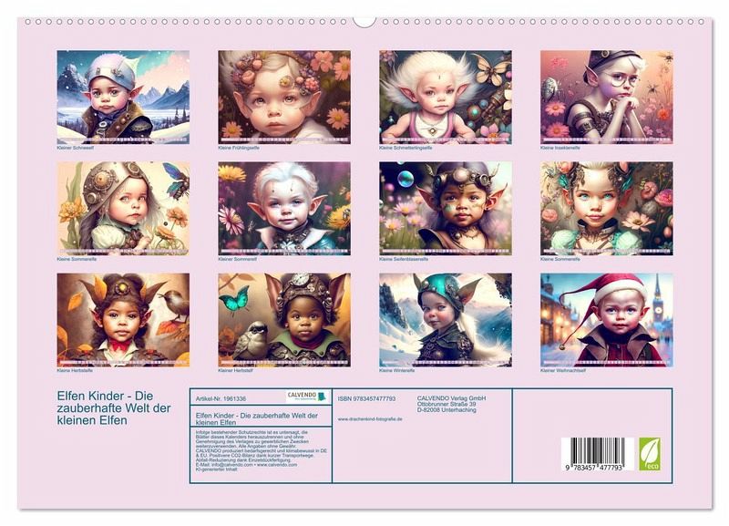 Sie lieben Mythologie und sind naturverbunden? Dann ist dieser Kalender genau das Richtige für Sie! Er zeigt 12 wunderschöne Bilder und ästhetische Illustrationen von Elfenkindern in ihrer zauberhaften Lebennswelt. Gehen Sie auf eine Reise durch das magische Reich der Elfenkinder und lassen Sie sich von der Magie und der Schönheit dieser fantastischen Wesen verzaubern. Dieser Kalender ist ein echter Hingucker für jeden Fan von Steampunk und Fantasy. Der Kalender von drachenkind-fotografie wurde mit Ki und Photoshop erstellt.