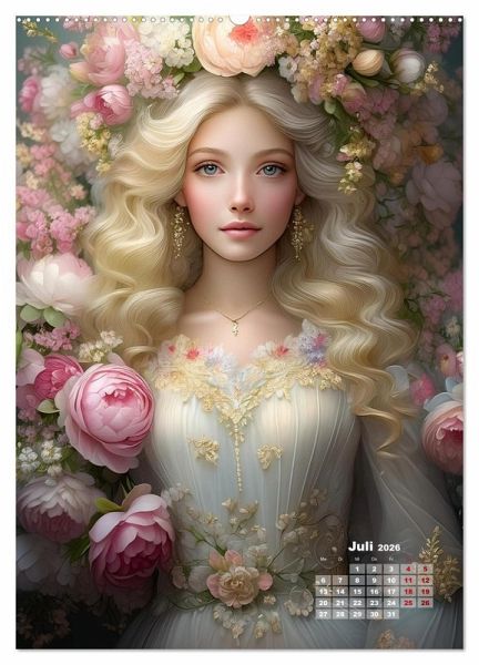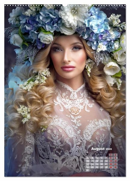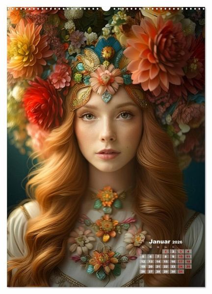 Tauchen Sie ein in die Welt der Blütenköniginnen und lassen Sie sich von ihrer Anmut und Eleganz verzaubern. Dieser Kalender präsentiert atemberaubende Portraits elfenhafter, zarter Frauen, die von opulenten Blütenkronen umrahmt werden.