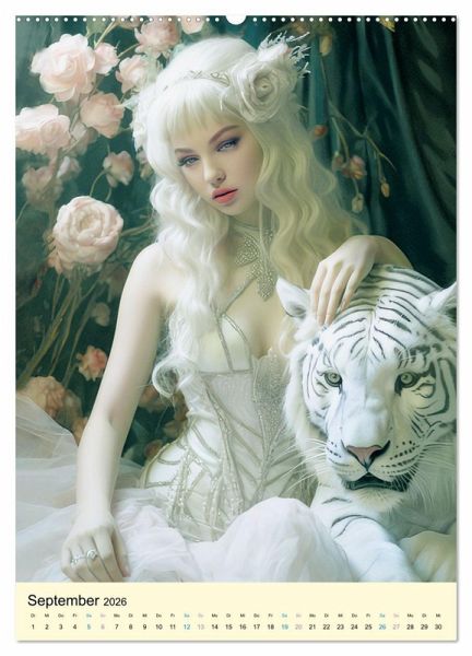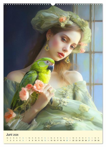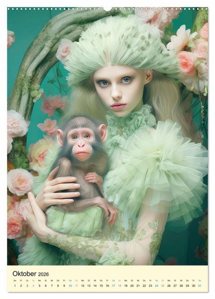 Zauberhafte Schönheit und fantasievolle Eleganz erwarten Sie. Lassen Sie sich von den zarten Farben mit einem dezenten Grünton verzaubern. Erleben Sie reizende Frauenportraits, die in atemberaubende Kleidung gehüllt sind. Doch das ist nicht alles, jedes Porträt zeigt die Frauen in Harmonie mit verschiedenen faszinierenden Tieren, die ihre einzigartige Persönlichkeit unterstreichen.