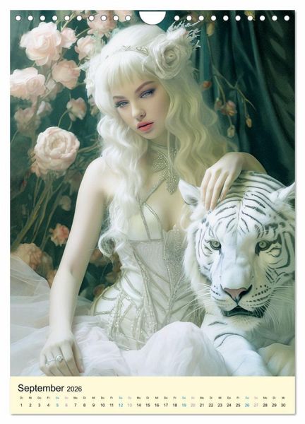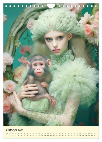 Zauberhafte Schönheit und fantasievolle Eleganz erwarten Sie. Lassen Sie sich von den zarten Farben mit einem dezenten Grünton verzaubern. Erleben Sie reizende Frauenportraits, die in atemberaubende Kleidung gehüllt sind. Doch das ist nicht alles, jedes Porträt zeigt die Frauen in Harmonie mit verschiedenen faszinierenden Tieren, die ihre einzigartige Persönlichkeit unterstreichen.