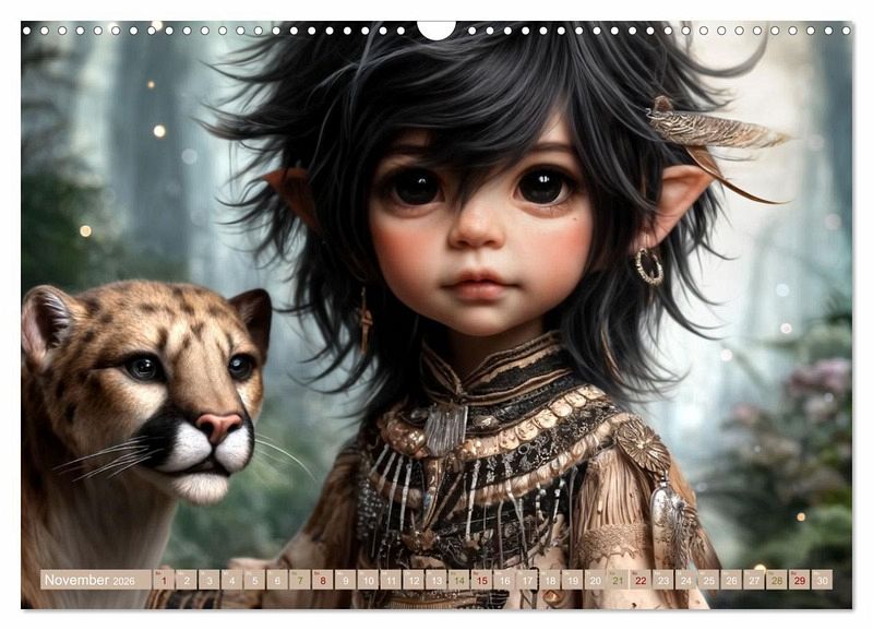 Elfen werden oft als Hüter der Natur gesehen, denn sind eng mit den Elementen verbunden und können mit Tieren und Pflanzen kommunizieren. Diese tiefe Verbundenheit zeigt sich in vielen Geschichten und Legenden, in denen Elfen und Tiere zusammen-arbeiten oder einander helfen. Dieser Kalender von drachenkind-fotografie entstand mit Hilfe von Ki und ist unter anderem inspiriert von den alten Völkern unserer Erde und ihren heiligen Tieren.
