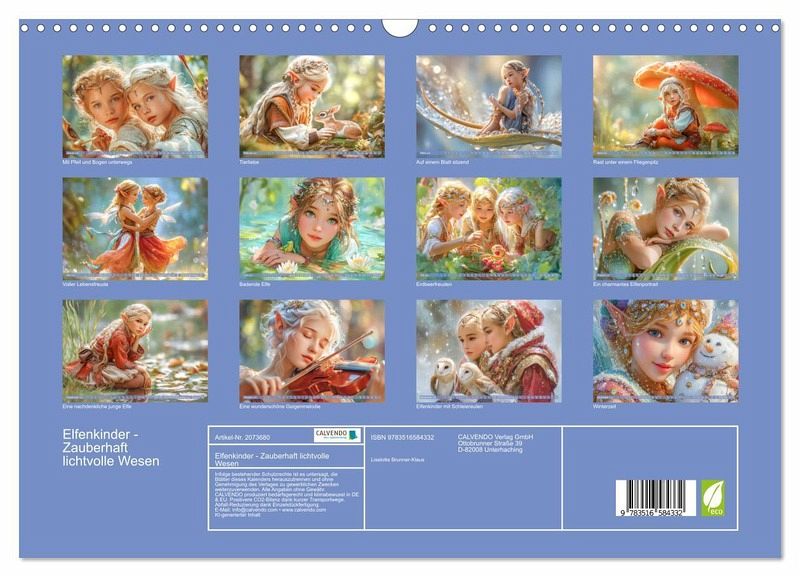 QUALITÄT - Hochwertiger Fotokalender mit 12 wunderschönen Motiven auf lichtbeständigem Bilderdruckpapier, robuste Spiralbindung mit Aufhängebügel.NACHHALTIG - deutliche Abfallreduzierung durch bedarfsgerechte Einzelstückfertigung, umweltfreundliches FSC-zertifiziertes Papier, Produktion in Deutschland, klimabewusste Logistik.PERFEKTES GESCHENK - Kalender für Freunde und Familie, für Kinder und Erwachsene, jung und alt, zu Weihnachten, Geburtstag oder zwischendurch.VIELFALT - Bildkalender in verschiedenen Formaten, z.B. DIN A5, DIN A4, DIN A3 sowie DIN A2. Ob Naturmotiv, Gemälde oder Fotos, ideal für ein persönliches Wohlfühlambiente.Anmutige Elfenkinder von Autor(in): Liselotte Brunner-Klaus