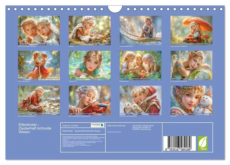 QUALITÄT - Hochwertiger Fotokalender mit 12 wunderschönen Motiven auf lichtbeständigem Bilderdruckpapier, robuste Spiralbindung mit Aufhängebügel.NACHHALTIG - deutliche Abfallreduzierung durch bedarfsgerechte Einzelstückfertigung, umweltfreundliches FSC-zertifiziertes Papier, Produktion in Deutschland, klimabewusste Logistik.PERFEKTES GESCHENK - Kalender für Freunde und Familie, für Kinder und Erwachsene, jung und alt, zu Weihnachten, Geburtstag oder zwischendurch.VIELFALT - Bildkalender in verschiedenen Formaten, z.B. DIN A5, DIN A4, DIN A3 sowie DIN A2. Ob Naturmotiv, Gemälde oder Fotos, ideal für ein persönliches Wohlfühlambiente.Anmutige Elfenkinder von Autor(in): Liselotte Brunner-Klaus