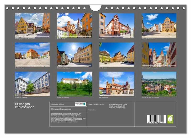QUALITÄT - Hochwertiger Fotokalender mit 12 wunderschönen Motiven auf lichtbeständigem Bilderdruckpapier, robuste Spiralbindung mit Aufhängebügel.NACHHALTIG - deutliche Abfallreduzierung durch bedarfsgerechte Einzelstückfertigung, umweltfreundliches FSC-zertifiziertes Papier, Produktion in Deutschland, klimabewusste Logistik.PERFEKTES GESCHENK - Kalender für Freunde und Familie, für Kinder und Erwachsene, jung und alt, zu Weihnachten, Geburtstag oder zwischendurch.VIELFALT - Bildkalender in verschiedenen Formaten, z.B. DIN A5, DIN A4, DIN A3 sowie DIN A2. Ob Naturmotiv, Gemälde oder Fotos, ideal für ein persönliches Wohlfühlambiente.Beeindruckende Bilder der Stadt im Osten Baden-Württembergs, Ellwangen von Autor(in): Dirk Meutzner