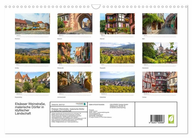 QUALITÄT - Hochwertiger Fotokalender mit 12 wunderschönen Motiven auf lichtbeständigem Bilderdruckpapier, robuste Spiralbindung mit Aufhängebügel.NACHHALTIG - deutliche Abfallreduzierung durch bedarfsgerechte Einzelstückfertigung, umweltfreundliches FSC-zertifiziertes Papier, Produktion in Deutschland, klimabewusste Logistik.PERFEKTES GESCHENK - Kalender für Freunde und Familie, für Kinder und Erwachsene, jung und alt, zu Weihnachten, Geburtstag oder zwischendurch.VIELFALT - Bildkalender in verschiedenen Formaten, z.B. DIN A5, DIN A4, DIN A3 sowie DIN A2. Ob Naturmotiv, Gemälde oder Fotos, ideal für ein persönliches Wohlfühlambiente.Zauberhafte Orte an der Weinstraße im Elsass von Nord nach Süd von Autor(in): JF-Fotografie