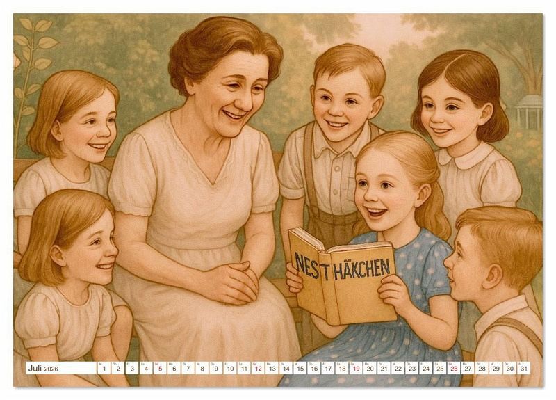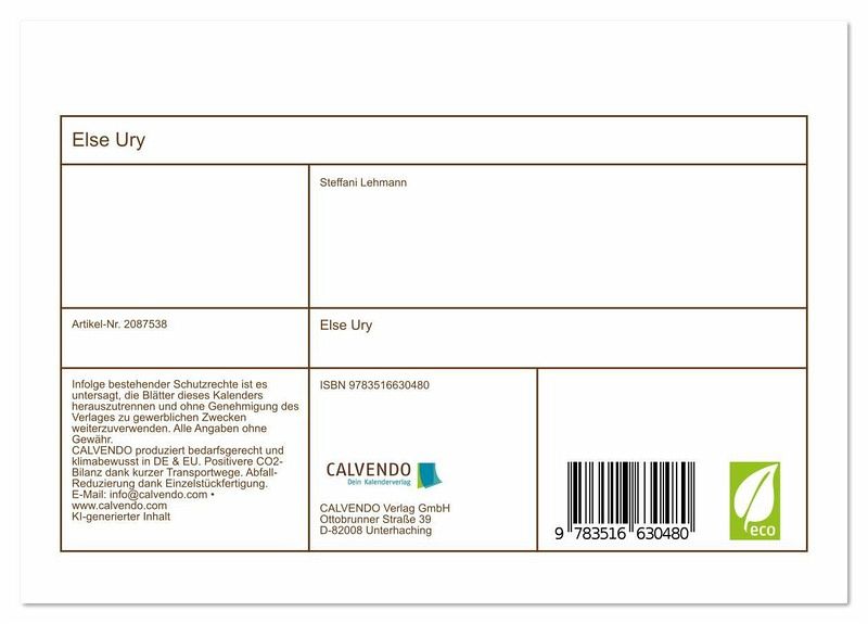 Entdecken Sie die bewegende Lebensgeschichte und die schönsten Werke von Else Ury, der berühmten Autorin des "Nesthäkchen". 12 stimmungsvolle Bilder, die Steffani Lehmann mit Unterstützung einer KI editiert hat, zeigen biografische Szenen und literarische Höhepunkte, von der Berliner Kindheit bis zu ihrem tragischen Schicksal als Jüdin. Ein Kalender, der einer großartigen Kinderbuchautorin ein würdiges Denkmal setzt.