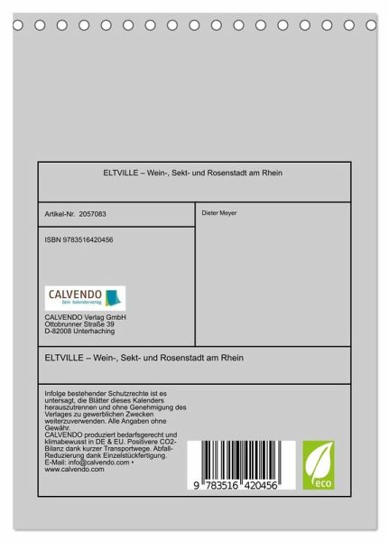 QUALITÄT - Hochwertiger Fotokalender mit 12 wunderschönen Motiven auf lichtbeständigem Bilderdruckpapier, robuste Spiralbindung.NACHHALTIG - deutliche Abfallreduzierung durch bedarfsgerechte Einzelstückfertigung, umweltfreundliches FSC-zertifiziertes Papier, Produktion in Deutschland, klimabewusste Logistik.PERFEKTES GESCHENK - Kalender für Freunde und Familie, für Kinder und Erwachsene, jung und alt, zu Weihnachten, Geburtstag oder zwischendurch.VIELFALT - Bildkalender in verschiedenen Formaten, z.B. DIN A5, DIN A4, DIN A3 sowie DIN A2. Ob Naturmotiv, Gemälde oder Fotos, ideal für ein persönliches Wohlfühlambiente.Romantische Altstadt von Eltville am Rhein mit Terminplaner von Autor(in): Dieter Meyer