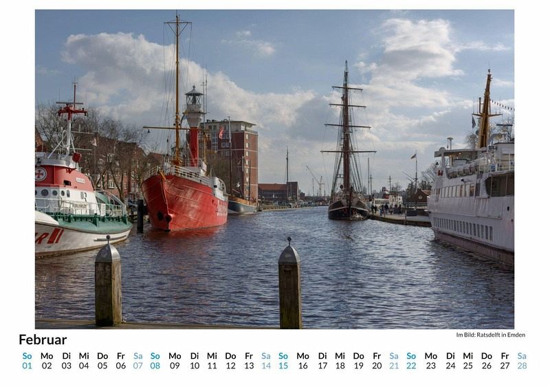 Entdecken Sie die charmante Hafenstadt Emden in all ihren Facetten mit unserem exklusiven Monats-Wandkalender! Lassen Sie sich Monat für Monat von 12 liebevoll ausgewählten Motiven verzaubern, die die maritime Schönheit und kulturelle Vielfalt dieser einzigartigen Stadt einfangen. Gedruckt auf hochwertigem, lichtbeständigem Bilderdruckpapier, bringt dieser Kalender die Atmosphäre Emdens direkt in Ihr Zuhause. Nachhaltigkeit liegt uns am Herzen: Unsere Kalender werden in Deutschland auf FSC-zertifiziertem Papier produziert. Perfekt als Geschenk oder für die eigene Wand - holen Sie sich ein Stück Emden in Ihr Leben! Hochwertig Erleben Sie ein Jahr voller Eleganz mit unserem Premium-Fotokalender. Jedes der 12 Motive ist auf hochwertigem, lichtbeständigem Bilderdruckpapier gedruckt, um die Lebendigkeit jedes Bildes zu bewahren. Die robuste Spiralbindung gewährleistet Langlebigkeit und einfache Handhabung. Nachhaltig Unser Engagement für die Umwelt spiegelt sich in jedem Exemplar wider. Durch die Produktion auf Abruf reduzieren wir signifikant unseren Abfall. Wir verwenden ausschließlich umweltfreundliches, FSC-zertifiziertes Papier. Stolz gefertigt in Deutschland, achten wir bei unserer Logistik auf Klimaschutz, um unseren ökologischen Fußabdruck zu minimieren. Das ideale Geschenk Dieser Kalender ist das perfekte Präsent für jeden Anlass - ob Weihnachten, Geburtstage oder einfach als liebevolle Aufmerksamkeit zwischendurch. Geeignet für Freunde, Familie, Kinder und Erwachsene gleichermaßen, bereichert er jedes Zuhause mit seiner Vielfalt und Schönheit, unabhängig vom Alter der Beschenkten.