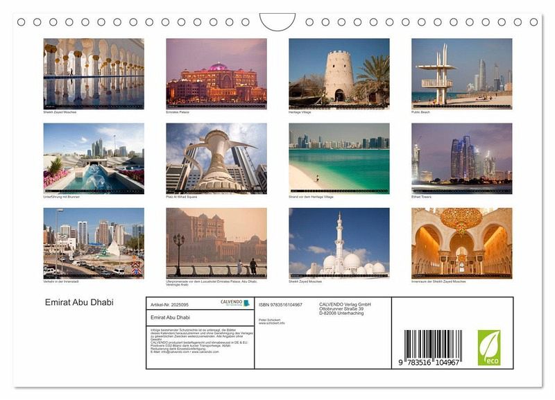 Das Emirat Abu Dhabi ist rasant wachsende moderne Grosstadt, Urlaubsparadies, Religion, traditionelle arabische Kultur und sagenhafter Reichtum in einem - eindrucksvoll dargestellt in diesem wunderbarem Kalender mit 13 farbenprächtigen Fotos aus der Hauptstadt der Vereinigten Arabischen Emirate.
