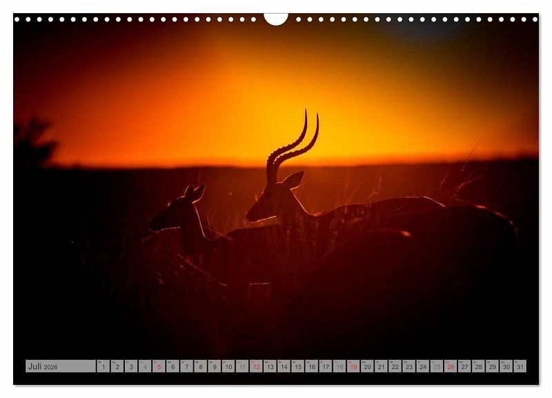 Juli: Juli: Impala-Antilopen im Licht der untergehenden Sonne.