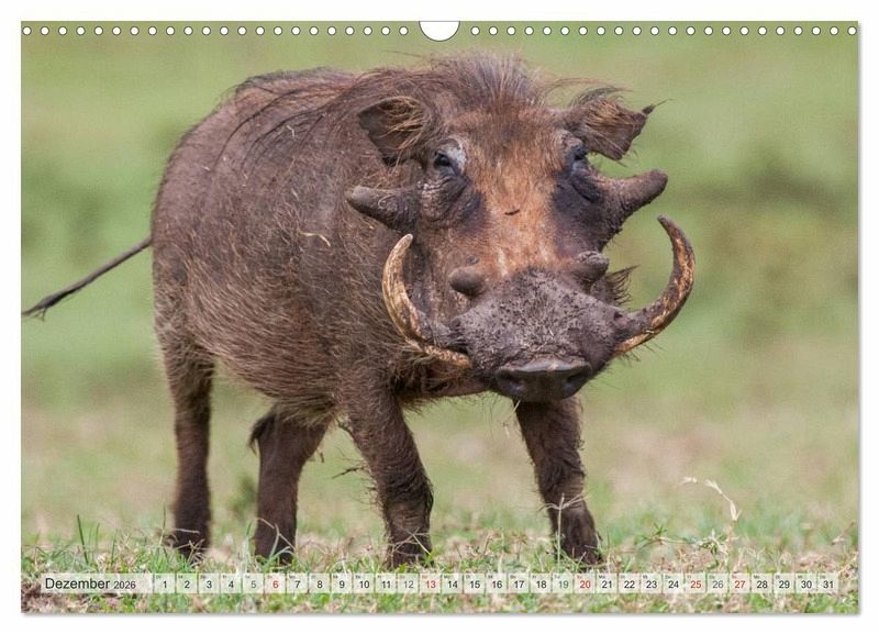 Dezember: Dezember: Das Warzenschwein hat im Dreck und Schlamm nach Fressbarem gesucht.
