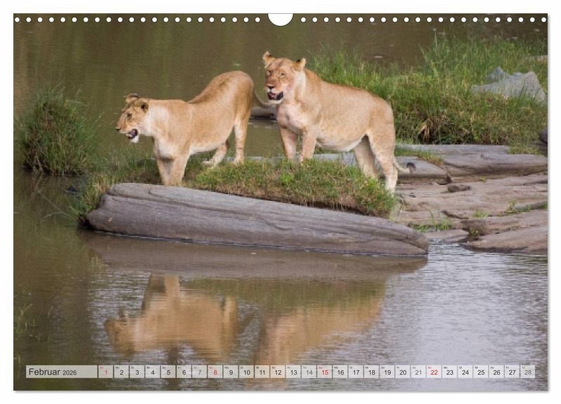 Februar: Februar: Die Löwinnen durchqueren den Talek-River in der Maasai Mara.