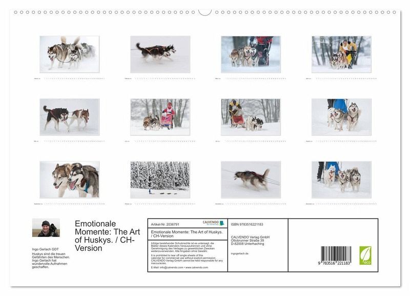 PREMIUM-LINIE - Brillanter Fotokalender mit 12 wunderschönen Motiven, Kunstdruck in Hochglanz in Museumsqualität.QUALITÄT - edle Materialien, stabile Rückwand mit 2 innovativen Einstecktaschen für eine optimale Präsentation an der Wand.NACHHALTIG - deutliche Abfallreduzierung durch bedarfsgerechte Einzelstückfertigung, umweltfreundliches FSC-zertifiziertes Papier, Produktion in Deutschland, klimabewusste Logistik.PERFEKTES GESCHENK - Kalender für Freunde und Familie, für Kinder und Erwachsene, jung und alt, zu Weihnachten, Geburtstag oder zwischendurch.Huskys sind die treuen Gefährten des Menschen. Ingo Gerlach hat wundervolle Aufnahmen geschaffen. von Autor(in): Ingo Gerlach