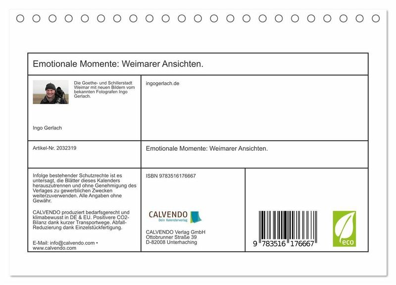 QUALITÄT - Hochwertiger Fotokalender mit 12 wunderschönen Motiven auf lichtbeständigem Bilderdruckpapier, robuste Spiralbindung.NACHHALTIG - deutliche Abfallreduzierung durch bedarfsgerechte Einzelstückfertigung, umweltfreundliches FSC-zertifiziertes Papier, Produktion in Deutschland, klimabewusste Logistik.PERFEKTES GESCHENK - Kalender für Freunde und Familie, für Kinder und Erwachsene, jung und alt, zu Weihnachten, Geburtstag oder zwischendurch.VIELFALT - Bildkalender in verschiedenen Formaten, z.B. DIN A5, DIN A4, DIN A3 sowie DIN A2. Ob Naturmotiv, Gemälde oder Fotos, ideal für ein persönliches Wohlfühlambiente.Die Goethe- und Schillerstadt Weimar mit neuen Bildern vom bekannten Fotografen Ingo Gerlach. von Autor(in): Ingo Gerlach