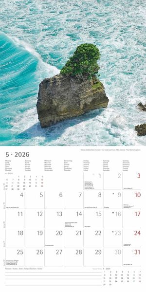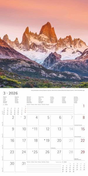 Das übersichtliche Kalendarium, welches Monat für Monat zahlreiche Zusatzinformationen liefert (z. B. Monatsübersichten, Ferientermine oder Mondphasen) und auch viel Platz für Notizen lässt, fügt sich harmonisch unter den Fotomotiven an. Lassen Sie sich vom Wandkalender Emotions 2026 der Marke Alpha Edition mit inspirierenden Landschaftsimpressionen durch das Jahr begleiten.