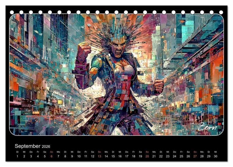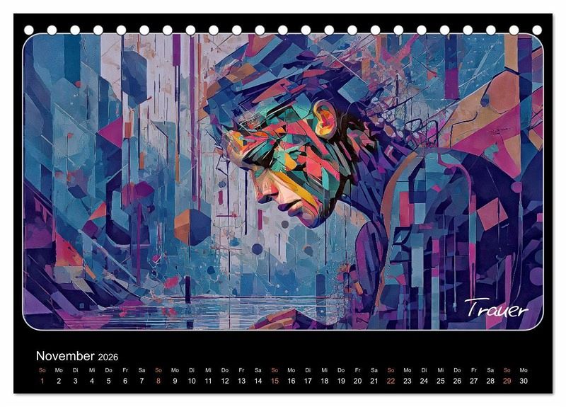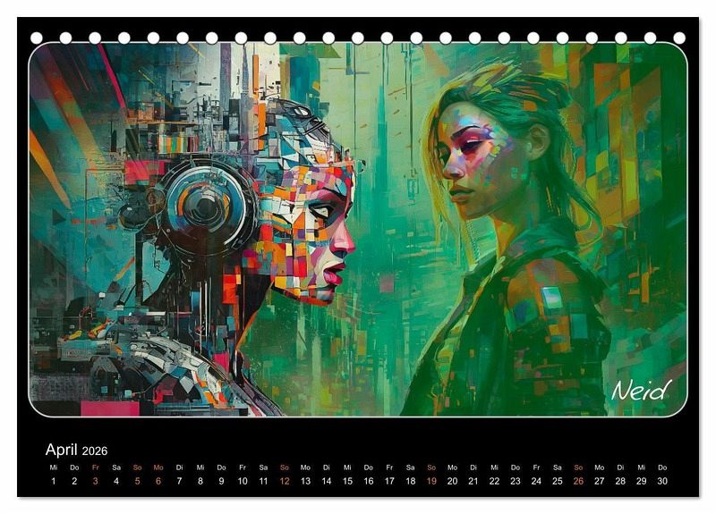 Glitch-Art ist eine Kunstform, welche das Erscheinungsbild digitaler Fehler und Störungen als ästhetische Elemente einsetzt. In diesem Kalender wurde die emotionale Wirkung dieser Glitch-Art-Ästhetik mit Hilfe von künstlicher Intelligenz dazu gebracht, Gefühlssituationen glaubhaft und dennoch dekorativ zu umrahmen. Damit ist es mit den Monatsbildern gelungen, sowohl positiven als auch negativen Gefühlen überzeugenden Ausdruck zu verleihen. Lassen Sie sich hinreißen von der starken visuellen Wirkung dieser Glitch-Art-Emotionen.