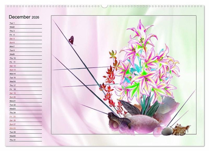 PREMIUM COLLECTION - Brilliant photo calendar with 12 beautiful motifs, high-gloss art print in museum quality.QUALITY - high-quality materials, sturdy back cover with 2 innovative insert pockets for optimum presentation on the wall.SUSTAINABLE - significant reduction in waste thanks to customised one-off production, environmentally friendly FSC-certified paper, production in Germany, climate-conscious logistics.PERFECT GIFT - calendars for friends and family, for children and adults, young and old, for Christmas, birthdays or in between.Images inspired from the Ikebana Art von Autor(in): Dusanka Djeric
