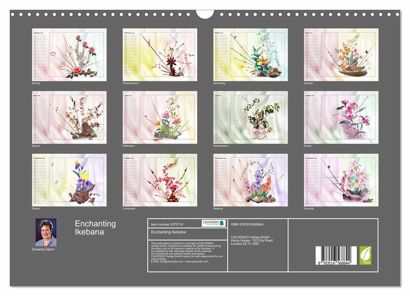 QUALITY - High-quality photo calendar with 12 beautiful images on light-resistant paper, robust spiral binding with hanger.SUSTAINABLE - Significant waste reduction due to print-on-demand production, environmentally friendly FSC-certified paper, produced in the UK, climate-conscious logistical processes.PERFECT GIFT - calendars for friends and family, for children, all ages and all occasions, from Christmas to birthdays and everything in between.LOTS OF CHOICE - Wall calendars in different sizes (DIN A4 and DIN A3), for any topic and personal taste, featuring photography, painting and illustrations.Images inspired from the Ikebana Art, author: Dusanka Djeric