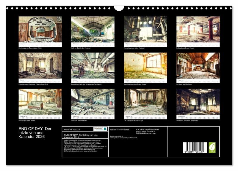 QUALITÄT - Hochwertiger Fotokalender mit 12 wunderschönen Motiven auf lichtbeständigem Bilderdruckpapier, robuste Spiralbindung mit Aufhängebügel.NACHHALTIG - deutliche Abfallreduzierung durch bedarfsgerechte Einzelstückfertigung, umweltfreundliches FSC-zertifiziertes Papier, Produktion in Deutschland, klimabewusste Logistik.PERFEKTES GESCHENK - Kalender für Freunde und Familie, für Kinder und Erwachsene, jung und alt, zu Weihnachten, Geburtstag oder zwischendurch.VIELFALT - Bildkalender in verschiedenen Formaten, z.B. DIN A5, DIN A4, DIN A3 sowie DIN A2. Ob Naturmotiv, Gemälde oder Fotos, ideal für ein persönliches Wohlfühlambiente.Szenerien verlassener Orte von Autor(in): der typ auf der couch
