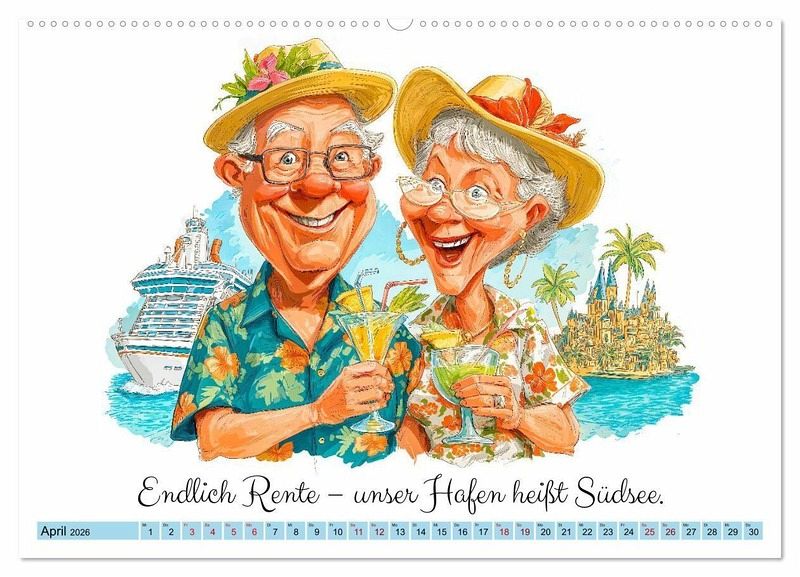 "Endlich Rente - So macht Ruhestand Spaß!" ist der witzige Sprüchekalender für alle frisch gebackenen Rentner. Monat für Monat sorgen lustige KI-generierten Illustrationen von Oma und Opa mit frechen Sprüchen für gute Laune. Ob Stricken, Reisen, Gärtnern oder Rockband - hier werden die wahren Rentnerträume humorvoll gezeigt. Das perfekte Geschenk zum Renteneintritt oder für alle, die Spaß am Ruhestand haben wollen.