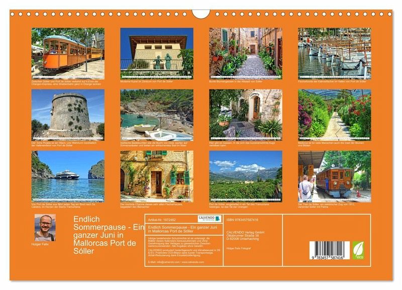 QUALITÄT - Hochwertiger Fotokalender mit 12 wunderschönen Motiven auf lichtbeständigem Bilderdruckpapier, robuste Spiralbindung mit Aufhängebügel.NACHHALTIG - deutliche Abfallreduzierung durch bedarfsgerechte Einzelstückfertigung, umweltfreundliches FSC-zertifiziertes Papier, Produktion in Deutschland, klimabewusste Logistik.PERFEKTES GESCHENK - Kalender für Freunde und Familie, für Kinder und Erwachsene, jung und alt, zu Weihnachten, Geburtstag oder zwischendurch.VIELFALT - Bildkalender in verschiedenen Formaten, z.B. DIN A5, DIN A4, DIN A3 sowie DIN A2. Ob Naturmotiv, Gemälde oder Fotos, ideal für ein persönliches Wohlfühlambiente.Port de Sóller: auf Mallorca - empfohlen in 13 Bildern von Autor(in): Holger Felix