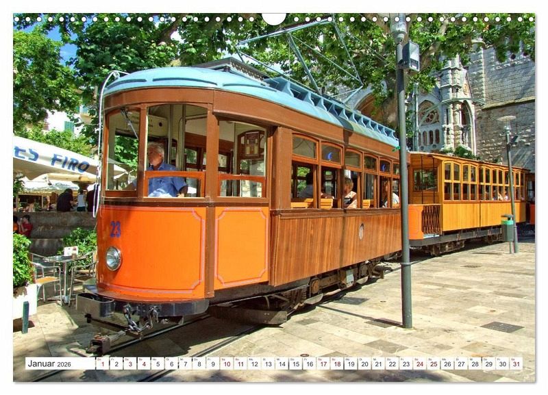 Januar: Zwischen Sóller und Port de Sóller verkehrt auf 4,8 km der Orangen-Express, eine Straßenbahn ganz in Orange lackiert