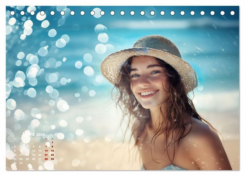 Bald ist es endlich wieder soweit. Der langersehnte Urlaub am Strand ist endlich da, hurra. Sommer, Sonne, Sand und Meer, wie lange haben wir das vermisst. Der schönste Moment des Jahres. Abschalten vom Alltag. Geist und Körper wieder auf Vordermann bringen. Die salzige Meeresbrise auf der Haut spüren, die Haare vom Wind zerzausen lassen oder ganz einfach einmal in das kühle Nass springen und die Kühle des Meeres um sich herum am gesamten Körper fühlen. Dieser Kalender, der mit Hilfe von KI entstand, schwelgt in Erinnerungen und in Vorfreude. Denn der nächste Sommer kommt ganz bestimmt.