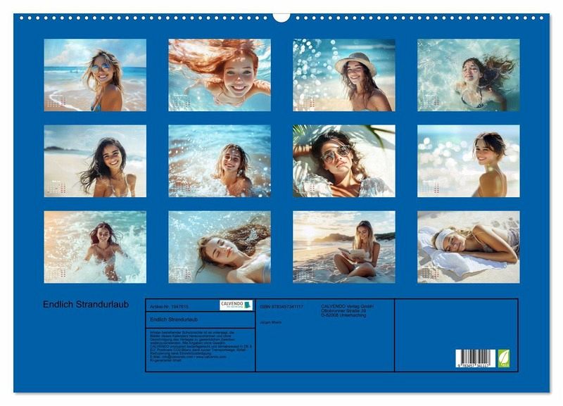 Bald ist es endlich wieder soweit. Der langersehnte Urlaub am Strand ist endlich da, hurra. Sommer, Sonne, Sand und Meer, wie lange haben wir das vermisst. Der schönste Moment des Jahres. Abschalten vom Alltag. Geist und Körper wieder auf Vordermann bringen. Die salzige Meeresbrise auf der Haut spüren, die Haare vom Wind zerzausen lassen oder ganz einfach einmal in das kühle Nass springen und die Kühle des Meeres um sich herum am gesamten Körper fühlen. Dieser Kalender, der mit Hilfe von KI entstand, schwelgt in Erinnerungen und in Vorfreude. Denn der nächste Sommer kommt ganz bestimmt.