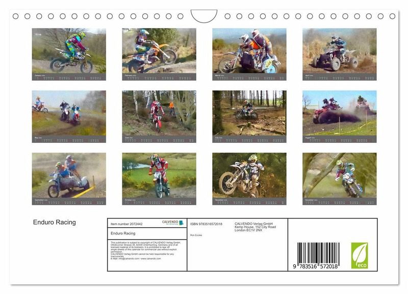 QUALITY - High-quality photo calendar with 12 beautiful images on light-resistant paper, robust spiral binding with hanger.SUSTAINABLE - Significant waste reduction due to print-on-demand production, environmentally friendly FSC-certified paper, produced in the UK, climate-conscious logistical processes.PERFECT GIFT - calendars for friends and family, for children, all ages and all occasions, from Christmas to birthdays and everything in between.LOTS OF CHOICE - Wall calendars in different sizes (DIN A4 and DIN A3), for any topic and personal taste, featuring photography, painting and illustrations.The Calendar for the Enduro enthusiast, author: ron eccles