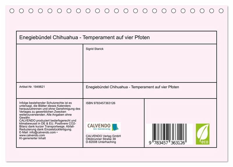 QUALITÄT - Hochwertiger Fotokalender mit 12 wunderschönen Motiven auf lichtbeständigem Bilderdruckpapier, robuste Spiralbindung.NACHHALTIG - deutliche Abfallreduzierung durch bedarfsgerechte Einzelstückfertigung, umweltfreundliches FSC-zertifiziertes Papier, Produktion in Deutschland, klimabewusste Logistik.PERFEKTES GESCHENK - Kalender für Freunde und Familie, für Kinder und Erwachsene, jung und alt, zu Weihnachten, Geburtstag oder zwischendurch.VIELFALT - Bildkalender in verschiedenen Formaten, z.B. DIN A5, DIN A4, DIN A3 sowie DIN A2. Ob Naturmotiv, Gemälde oder Fotos, ideal für ein persönliches Wohlfühlambiente.Die kleinste Hunderasse der Welt auf 13 faszinierenden Fotos von Autor(in): SiSta-Tierfoto