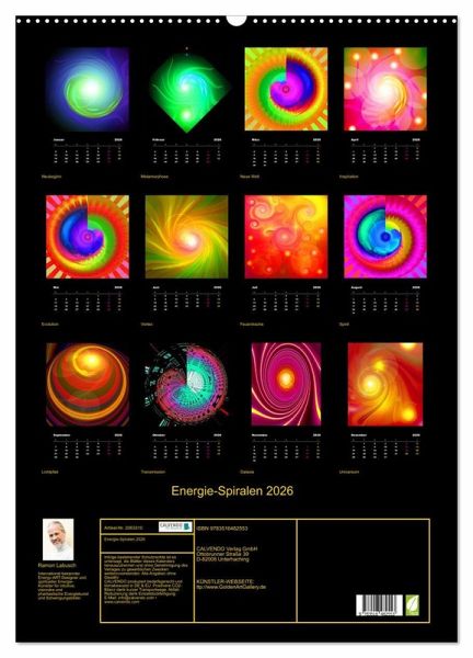 Alles in unserer Welt - sogar das für unser Auge Unsichtbare - ist Energie und Schwingung und erscheint noch lebendiger durch Licht und Farbe. Alles, vom kleinsten Elementarteilchen bis hin zur universellen Spiral-Galaxie, bewegt und dreht sich, bildet eine Spirale oder gestaltet sich kreisförmig. Die vorliegenden Energiespiralen vermitteln einen kleinen Eindruck von der unbeschreiblichen Dynamik und Verschiedenartigkeit und sprechen dennoch alle eine gemeinsame Sprache: sie pulsieren und bewegen sich spiralförmig entweder hinein oder heraus, rechts- oder linksdrehend. Die Energie-Spiralen haben eine motivierende und befreiende Eigen-Dynamik, in Abhängigkeit von Form und Farbe. Jeder, der sie betrachtet, wird individuell darauf reagieren. Die Spiralen erhöhen das positive Raumklima (im Sinne des Feng-Shui), und eignen sich hervorragend zur Wand-Dekoration von Naturheilpraxen, Arztpraxen, Kliniken und REHA-Einrichtungen, Seniorenresidenzen, Yoga- und Wellness-Einrichtungen, Konferenzräumen, Büros, Hotels, Foyers und Wartezonen. Die Spiralbilder dienen sowohl als stimulierende wie auch beruhigende Wohlfühl-Kunstobjekte und Dekorationen. Sie verschönern und harmonisieren Ihren privaten Wohnraum sowie Ihre Rückzugs- und Erholungs-Oasen. Es sind farbenprächtige Spiralen-Kunstwerke, die ein modernes Business-Interior noch facettenreicher und energetischer zu gestalten vermögen.Energie-Bilder von Ramon Labusch: International bekannter Energy-ART-Designer und Energie-Künstler für intuitive, visionäre und phantastische Energiekunst und Schwingungsbilder.Webseite: http://www.GoldenArtGallery.de
