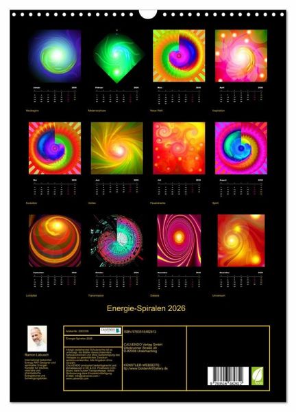 Alles in unserer Welt - sogar das für unser Auge Unsichtbare - ist Energie und Schwingung und erscheint noch lebendiger durch Licht und Farbe. Alles, vom kleinsten Elementarteilchen bis hin zur universellen Spiral-Galaxie, bewegt und dreht sich, bildet eine Spirale oder gestaltet sich kreisförmig. Die vorliegenden Energiespiralen vermitteln einen kleinen Eindruck von der unbeschreiblichen Dynamik und Verschiedenartigkeit und sprechen dennoch alle eine gemeinsame Sprache: sie pulsieren und bewegen sich spiralförmig entweder hinein oder heraus, rechts- oder linksdrehend. Die Energie-Spiralen haben eine motivierende und befreiende Eigen-Dynamik, in Abhängigkeit von Form und Farbe. Jeder, der sie betrachtet, wird individuell darauf reagieren. Die Spiralen erhöhen das positive Raumklima (im Sinne des Feng-Shui), und eignen sich hervorragend zur Wand-Dekoration von Naturheilpraxen, Arztpraxen, Kliniken und REHA-Einrichtungen, Seniorenresidenzen, Yoga- und Wellness-Einrichtungen, Konferenzräumen, Büros, Hotels, Foyers und Wartezonen. Die Spiralbilder dienen sowohl als stimulierende wie auch beruhigende Wohlfühl-Kunstobjekte und Dekorationen. Sie verschönern und harmonisieren Ihren privaten Wohnraum sowie Ihre Rückzugs- und Erholungs-Oasen. Es sind farbenprächtige Spiralen-Kunstwerke, die ein modernes Business-Interior noch facettenreicher und energetischer zu gestalten vermögen.Energie-Bilder von Ramon Labusch: International bekannter Energy-ART-Designer und Energie-Künstler für intuitive, visionäre und phantastische Energiekunst und Schwingungsbilder.Webseite: http://www.GoldenArtGallery.de