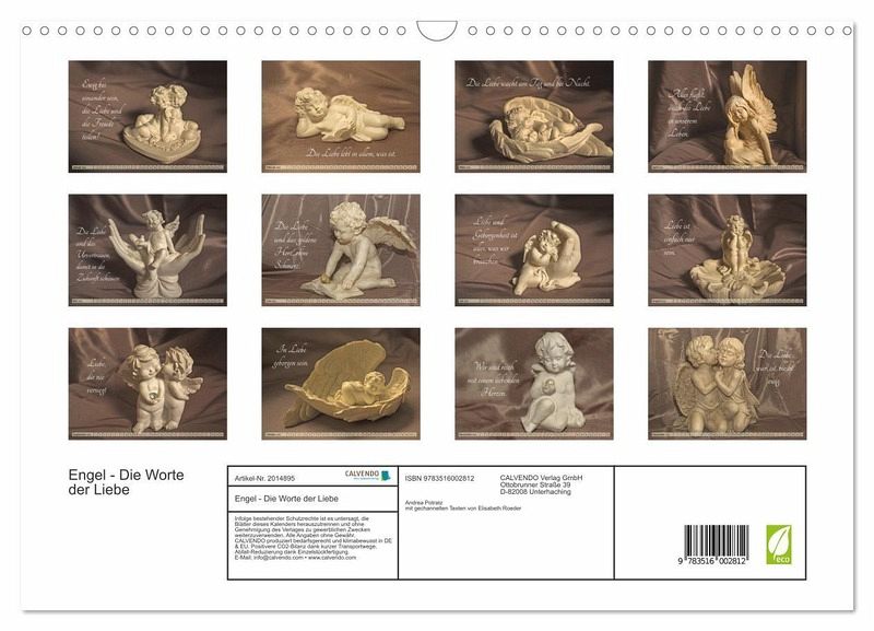 QUALITÄT - Hochwertiger Fotokalender mit 12 wunderschönen Motiven auf lichtbeständigem Bilderdruckpapier, robuste Spiralbindung mit Aufhängebügel.NACHHALTIG - deutliche Abfallreduzierung durch bedarfsgerechte Einzelstückfertigung, umweltfreundliches FSC-zertifiziertes Papier, Produktion in Deutschland, klimabewusste Logistik.PERFEKTES GESCHENK - Kalender für Freunde und Familie, für Kinder und Erwachsene, jung und alt, zu Weihnachten, Geburtstag oder zwischendurch.VIELFALT - Bildkalender in verschiedenen Formaten, z.B. DIN A5, DIN A4, DIN A3 sowie DIN A2. Ob Naturmotiv, Gemälde oder Fotos, ideal für ein persönliches Wohlfühlambiente.12 Engelbotschaften begleiten Sie durchs Jahr. von Autor(in): Andrea Potratz.