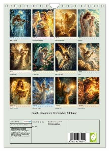 Tauchen Sie ein in die göttliche Welt der Engel mit unserem exquisiten Kalender 'Engel - Eleganz mit himmlischen Attributen'. Jeder Monat präsentiert himmlische Wesen, umgeben von Symbolen wie Schafen, Tauben und himmlischer Musik. Die kunstvollen, KI-generierten Illustrationen vereinen himmlische Harmonien und ästhetische Schönheit. Ideal als Geschenk für Kunstliebhaber, spirituelle Seelen oder als inspirierende Dekoration für Ihr Zuhause.
