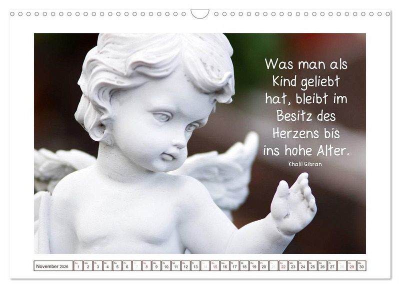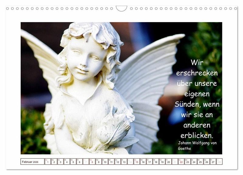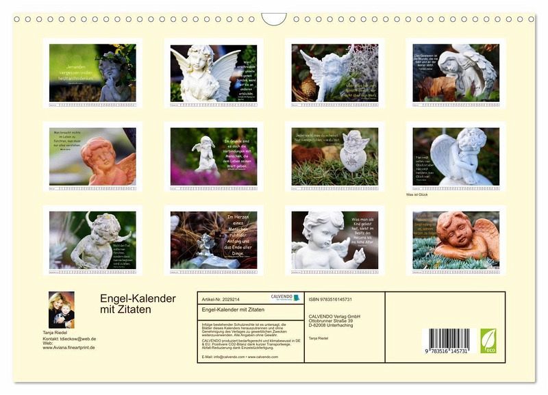 Der Engel ist ein Symbol des Friedens, der Freiheit und der Hoffnung. Wunderschön ausgearbeitete Fotografien von Tanja Riedel und ausgewählte Zitate von großen Persönlichkeiten unserer Zeit, Begleiten Sie Monat für Monat durch das Jahr.